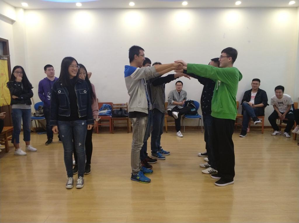 此次活动分为三个阶段,第一个阶段:热身阶段,“1分钟鼓掌”,响亮的掌声在计时开始一直持续了1分钟,祝贺研一新生进入人生新阶段;随后进行了“我知道”游戏,大家积极的介绍自己,让其他同学了解自己,从而增进了同学之间的感情;第二阶段:过渡阶段,分为“信任之旅”,“集体登陆”,“人体字母”,“人椅破冰”,“快乐传递”,“信心启迪”,活动中,同学们创意无限,勇敢果断,充满热情的气氛把活动推到了高潮,大家用心写出每个人的优点,增强别人自信的同时,自己也收获了自信。最后一个阶段:结束阶段,每一个小组画一幅代表自己小组特点的创意团体树,最后在相信相爱一家人这首歌曲中结束了本次活动,同学们对于游戏意犹未尽,享受活动带来的乐趣。