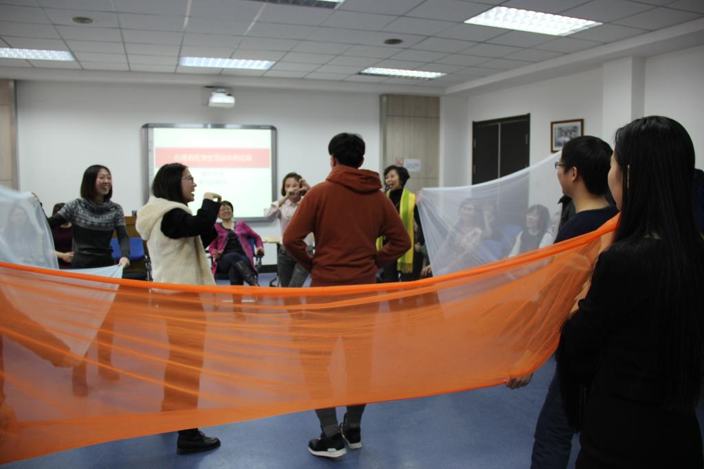 培训中桑老师首先介绍了螺旋心理剧的起源和发展,让大家了解到螺旋心理剧是经验取向的治疗模式,是藉由参与者的行为表演转化为心理力量,从中培养、提高对自身的洞察能力,实现自我整合与人际关系和谐的一种深层心灵互动模式,具有高度参与性、体验性、启发性的特点,已被公认为是一种快速、安全、有效并且独具魅力的心灵治疗方法。随后的3个小时培训中,桑老师带领大家通过能量传递、光谱测量、社会计量等方法,参与角色扮演,帮助大家在角色互换与亲身体验中组建团队、发现自我、学习技能